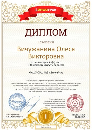 » Диплом первой степени проекта infourok.ru